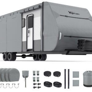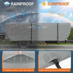 - Durable Material: There are 7 layers of top fabric and 3 layers of side fabric. The RV cover is made of non-woven fabric mixed with waterproof membrane and anti-uv compositions, which is heavy duty and durable. The travel trailer cover will provide strong full protection for your RV.