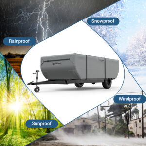 - Anti-UV & Waterproof: The pop up camper cover is made of thick non-woven fabric including built-in waterproof coating layer and anti-uv composition layer, avoid aging and tearing due to exposure to the sun. The cover can fully protect your RV from sun exposure, rain, snow, dust. The corners of the RV cover are thickened, which will effectively solve the edges tearing problem of RV cover.