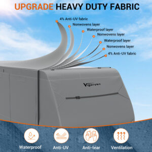 - Durable Material: There are 7 layers of top fabric and 3 layers of side fabric. The RV cover is made of non-woven fabric mixed with waterproof membrane and anti-uv compositions, which is heavy duty and durable. The travel trailer cover will provide strong full protection for your RV.